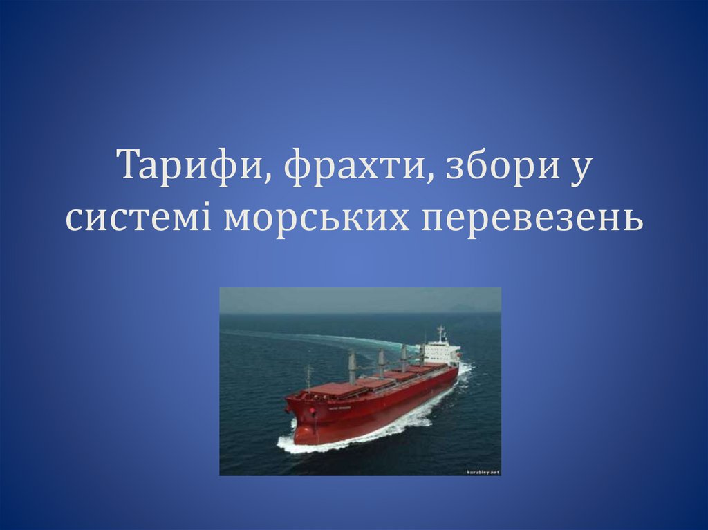 • Тариф (морський) – це оголошена вартістьперевезення (іншої послуги) одиниці вантажу в