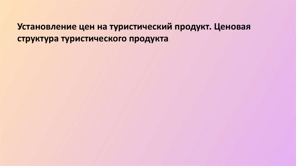 Установление цен на туристический продукт. Ценоваяструктура туристического продукта