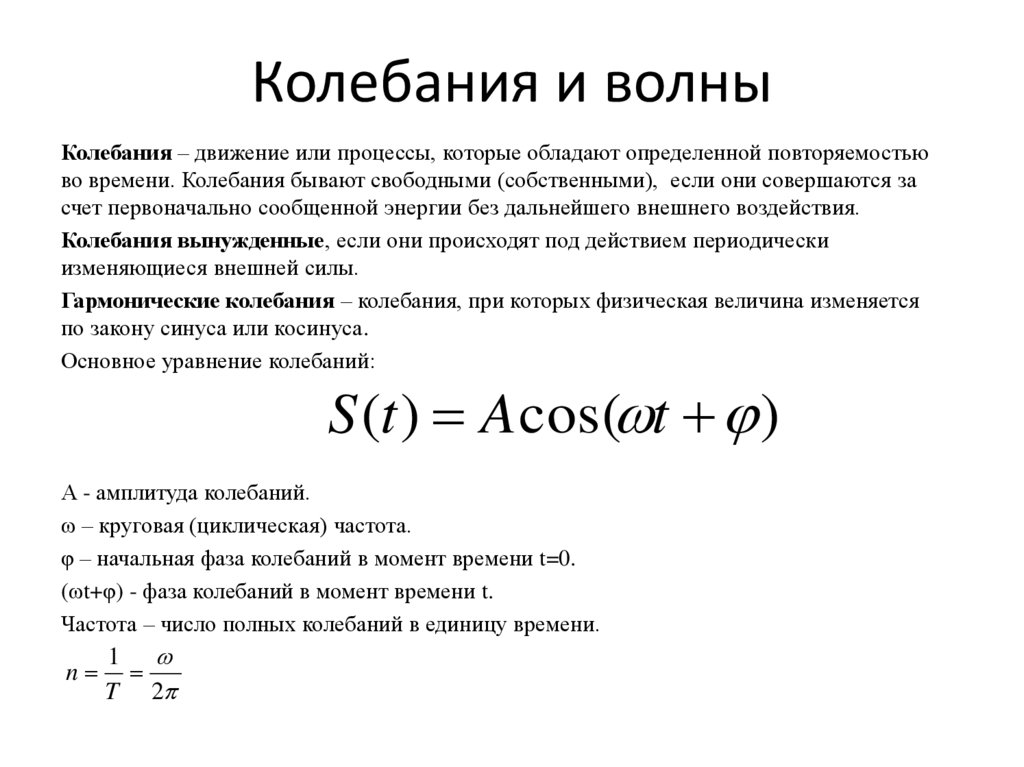 Колебания – движение или процессы, которые обладают определенной повторяемостьюво времени. Колебания бывают свободными (собственными), если они совершаются за