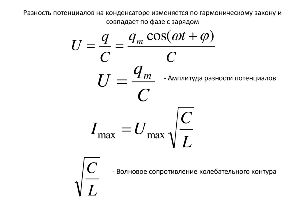 Падение напряжения на конденсаторе одинаковы по амплитуде и противоположны по