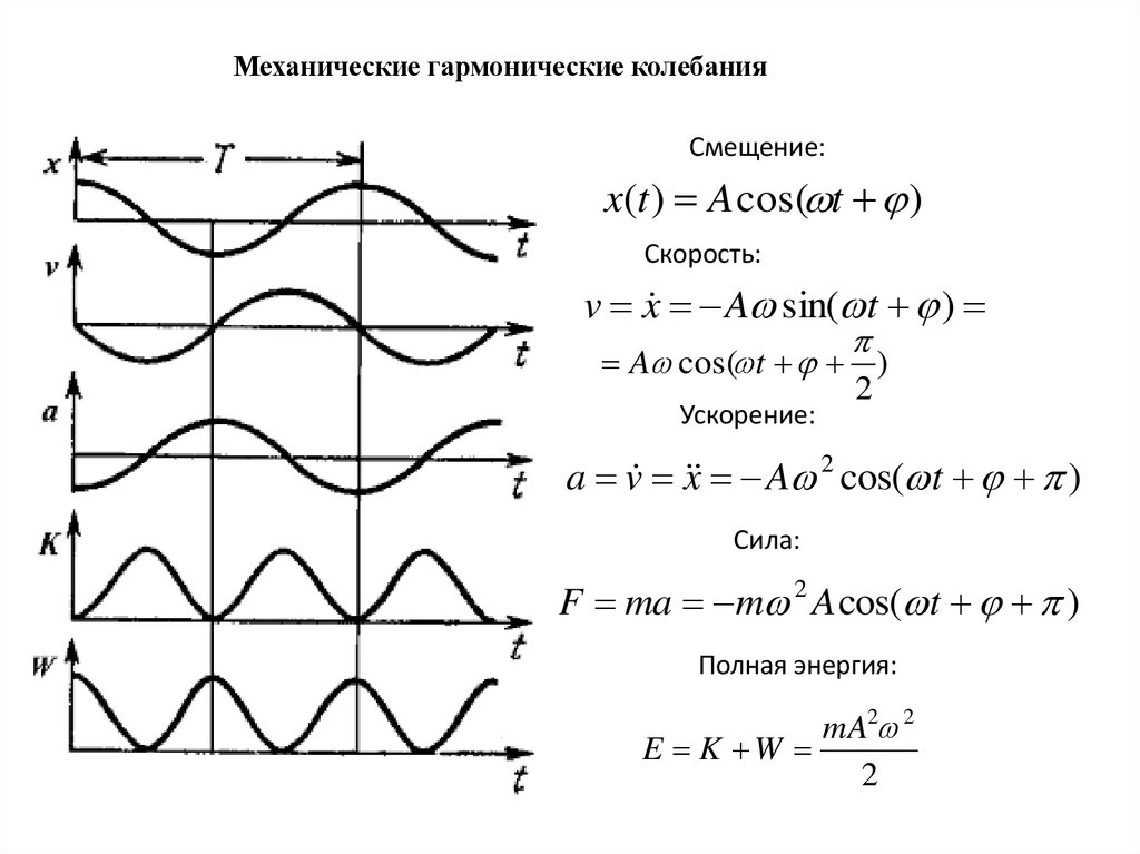 Механические гармонические колебанияСмещение: