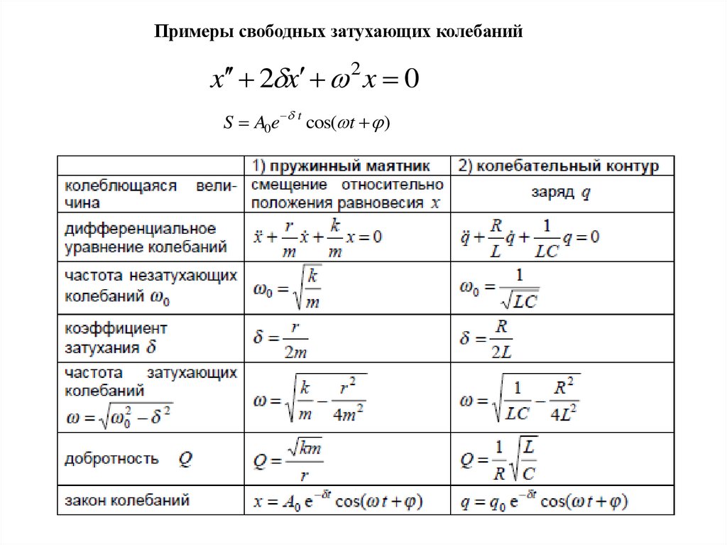 Примеры свободных затухающих колебанийx 2 x 2 x 0