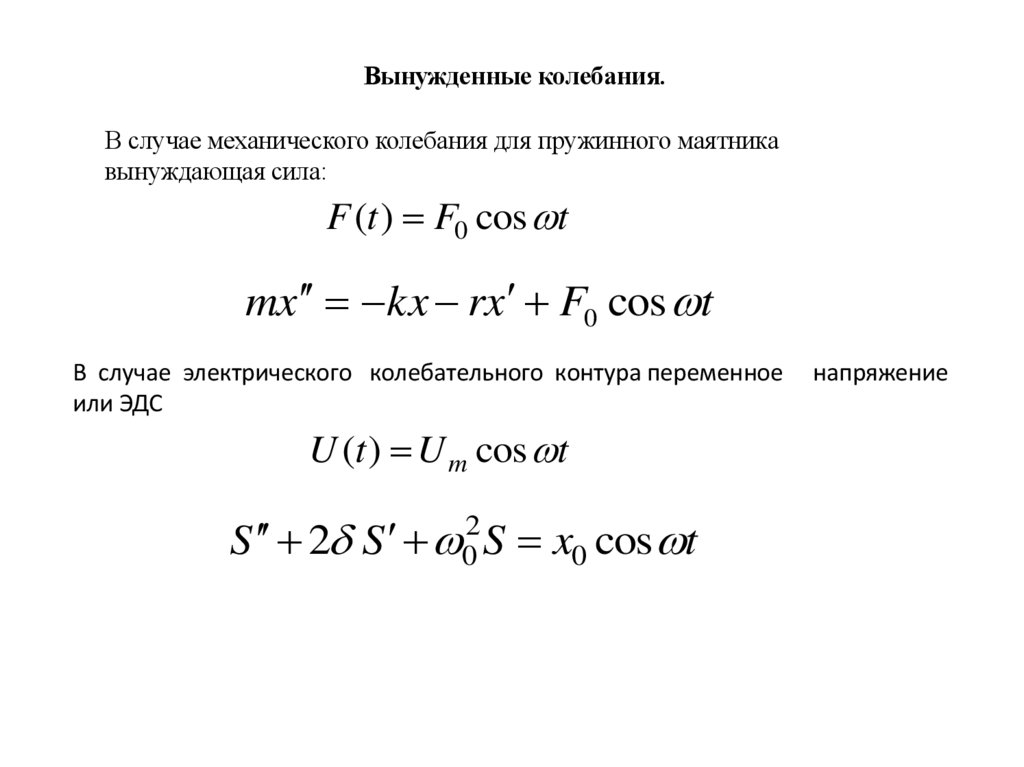 Вынужденные колебания.В случае механического колебания для пружинного маятника