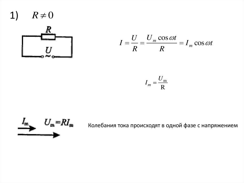и изменение тока и напряжение происходит синфазно, z=R и ток определяется только