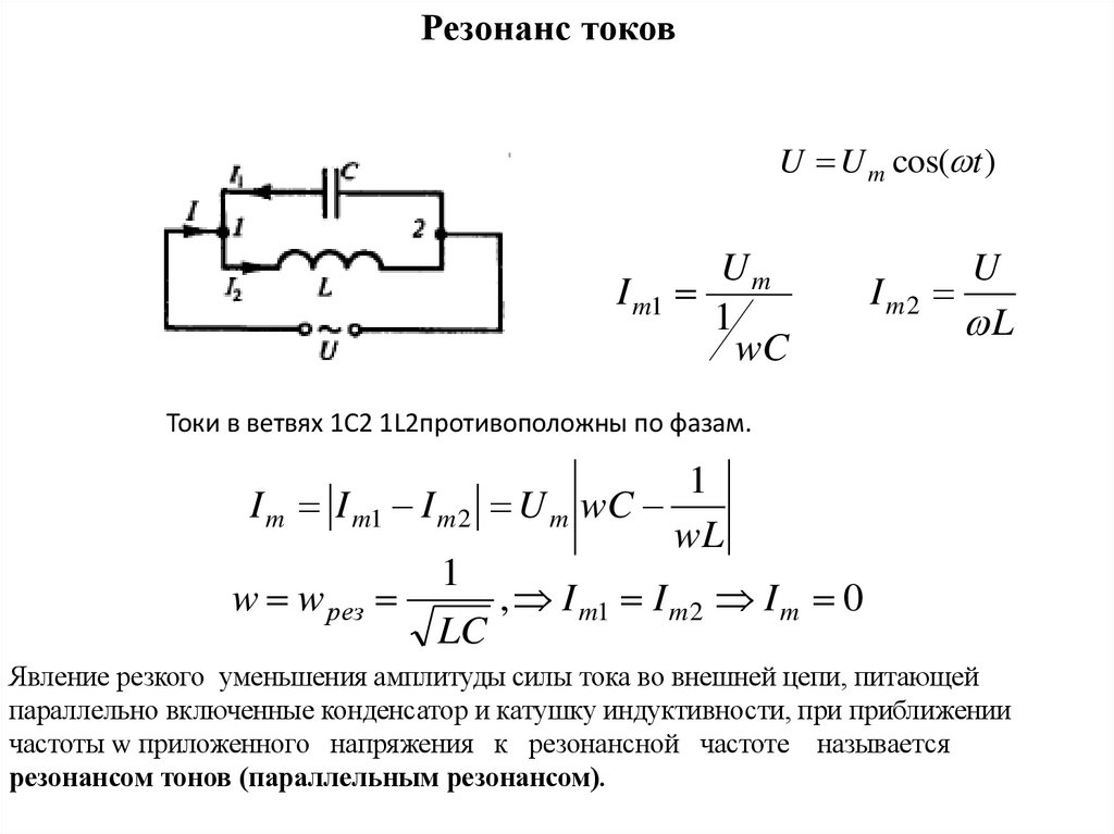 Токи в ветвях 1С2 1L2противоположны по фазам.