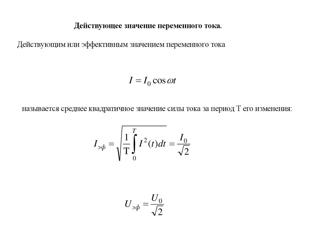называется среднее квадратичное значение силы тока за период Т его изменения: