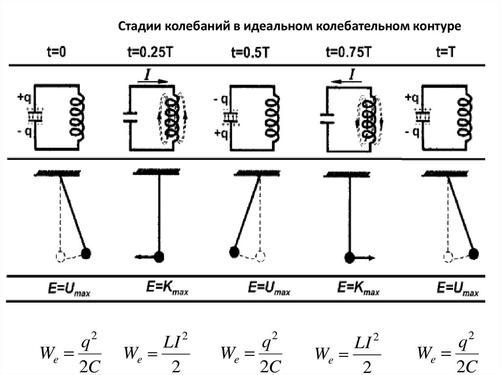 Стадии колебаний в идеальном колебательном контуреq2