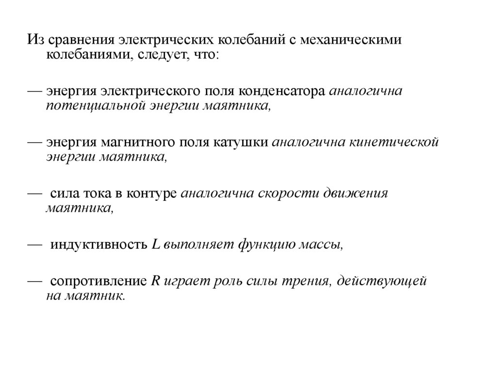 Из сравнения электрических колебаний с механическимиколебаниями, следует, что: