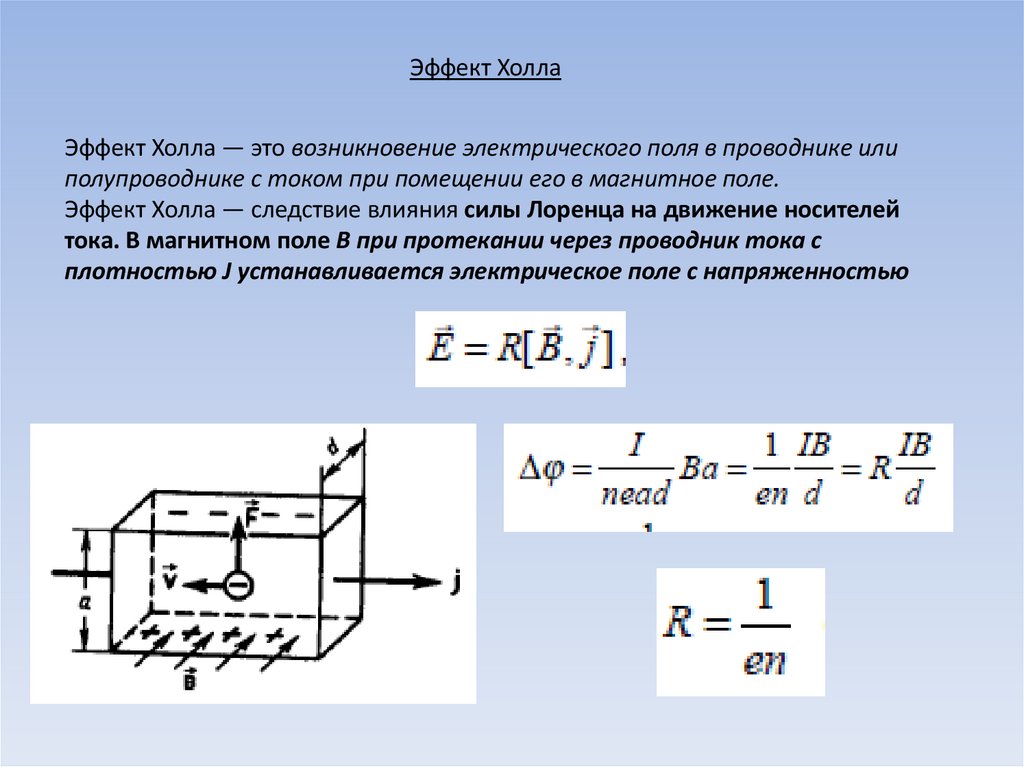 Эффект ХоллаЭффект Холла — это возникновение электрического поля в проводнике или