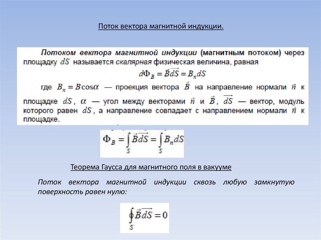 Поток вектора магнитной индукции.Теорема Гаусса для магнитного поля в вакууме
