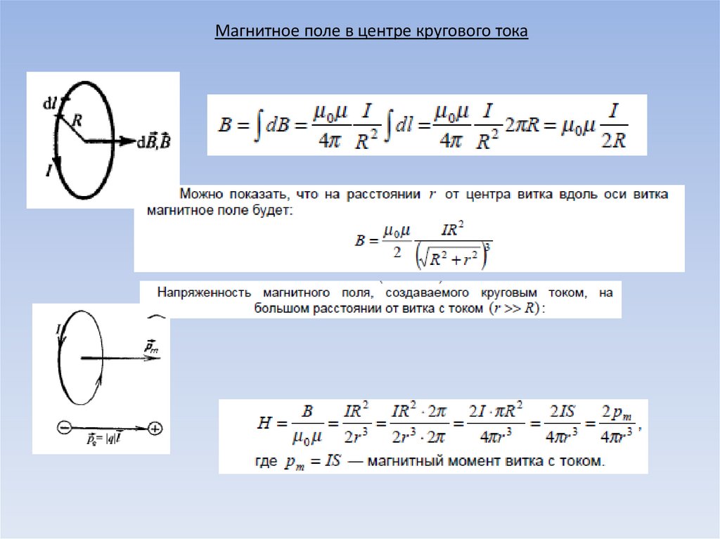 Магнитное поле в центре кругового тока10.