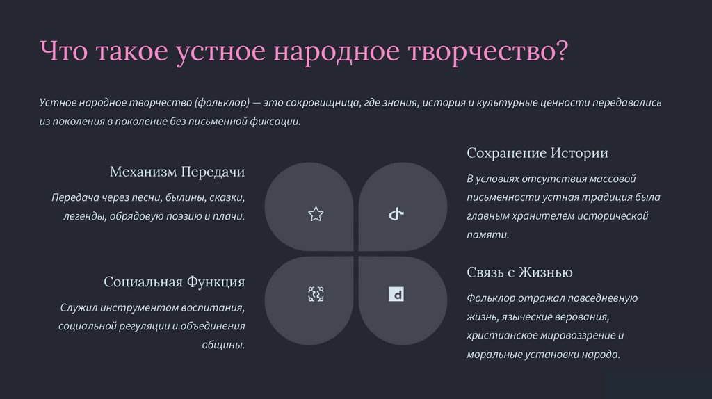 Устное народное творчество (фольклор) — это сокровищница, где знания, история и культурные ценности передавались
