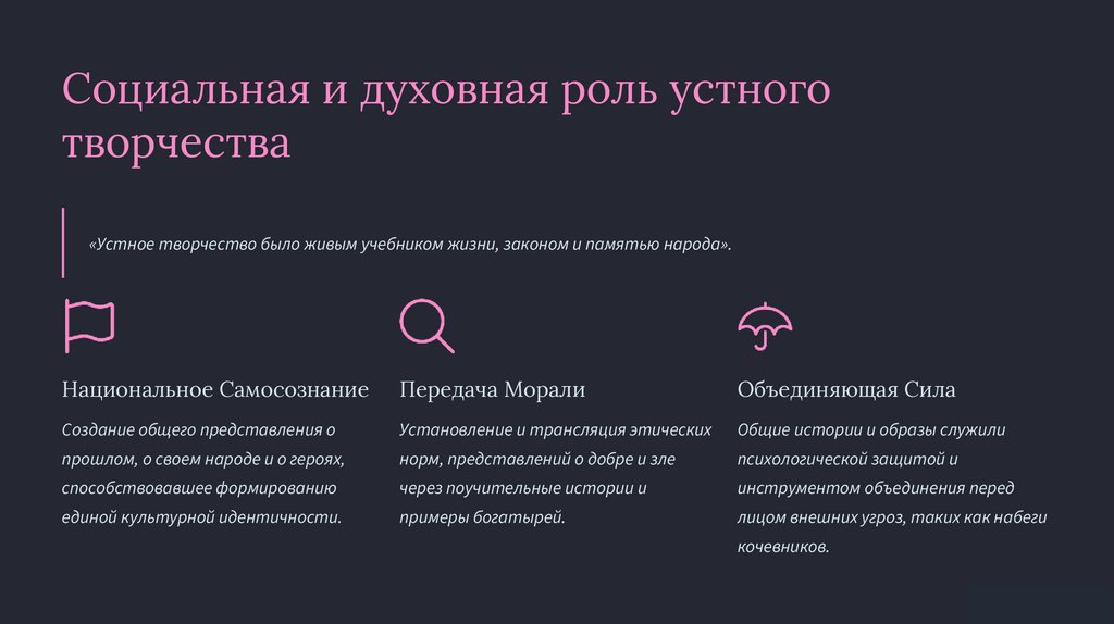 «Устное творчество было живым учебником жизни, законом и памятью народа».