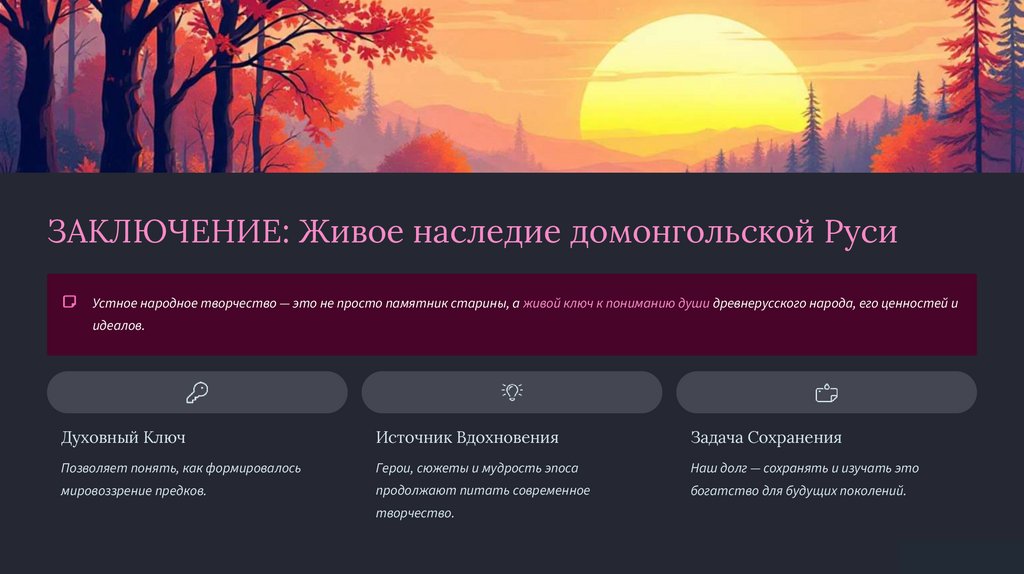Устное народное творчество — это не просто памятник старины, а живой ключ к пониманию души древнерусского народа, его ценностей и