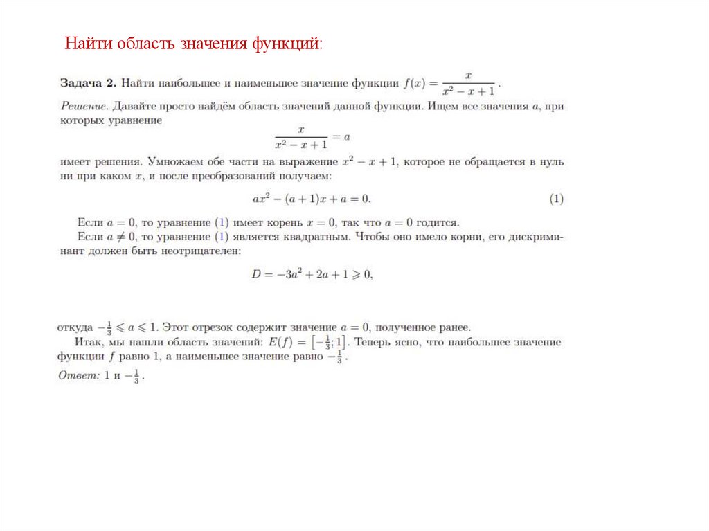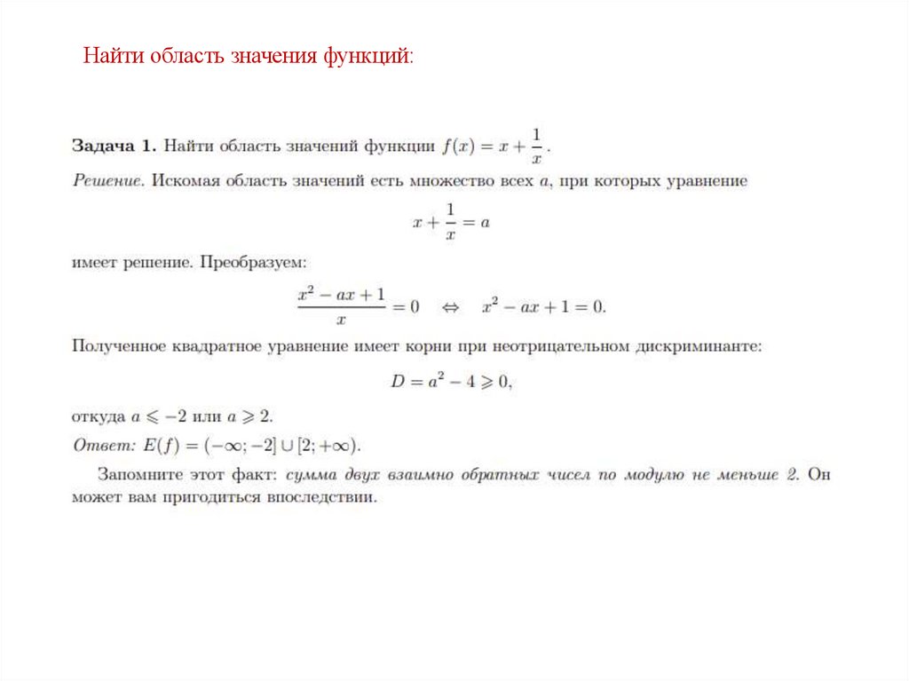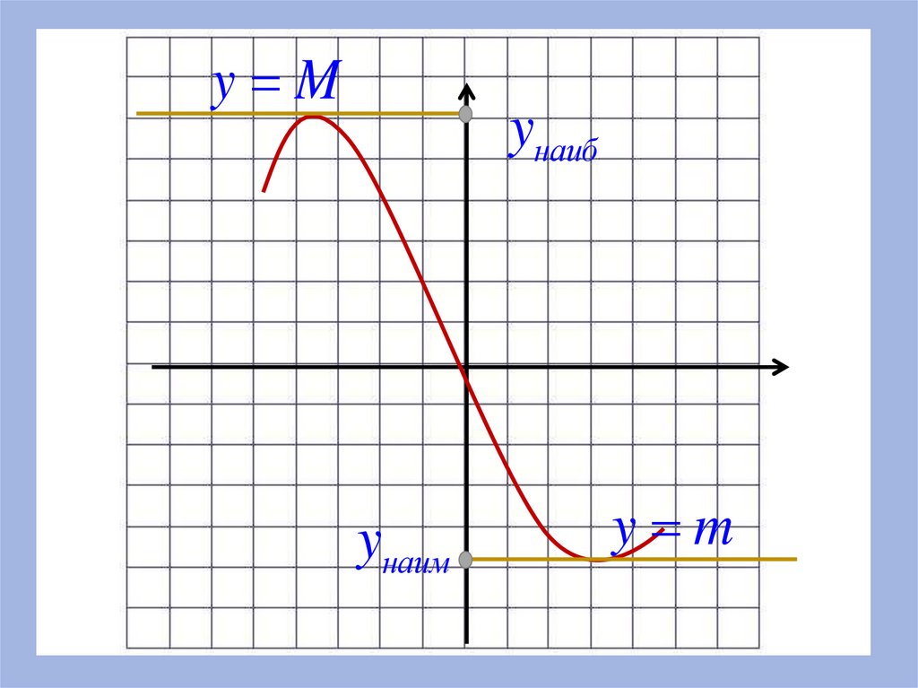 1) в области определения существует такая точка х0, что f(х0) = m.