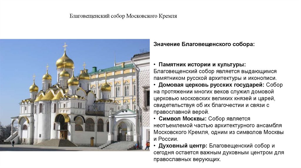 Благовещенский собор Московского КремляЗначение Благовещенского собора: