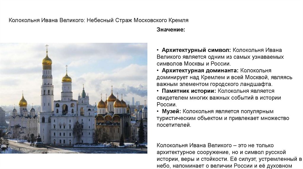 Колокольня Ивана Великого: Небесный Страж Московского КремляЗначение: