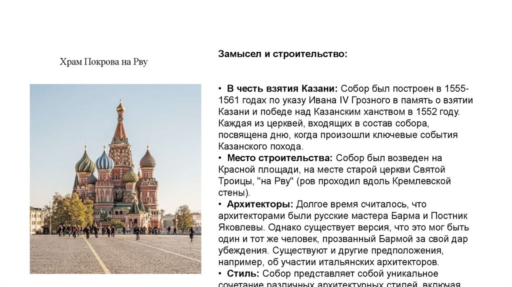 • В честь взятия Казани: Собор был построен в 15551561 годах по указу Ивана IV Грозного в память о взятии