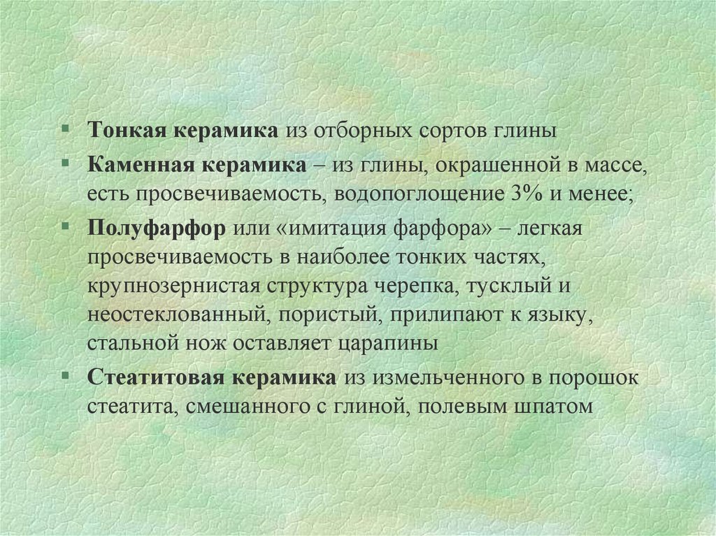 3. 1. Керамика - неорганические, неметаллические материалы, горные породы, подвергнутые обжигу после формовки