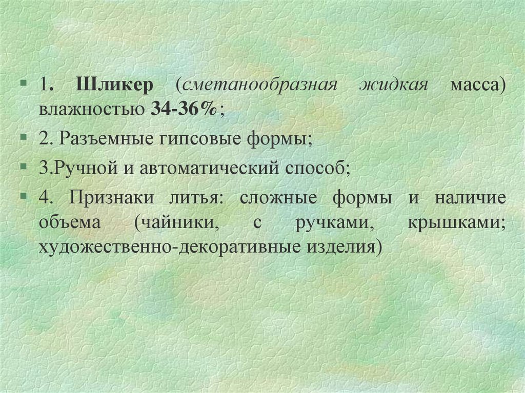 1. Пластичные материалы (глины, каолин) определяютспособность керамической массы формоваться.
