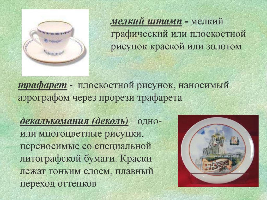 декалькомания (деколь) – одноили многоцветные рисунки,