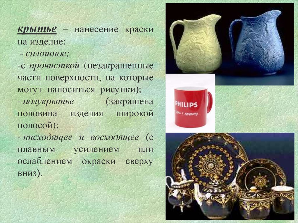 крытье – нанесение краскина изделие: