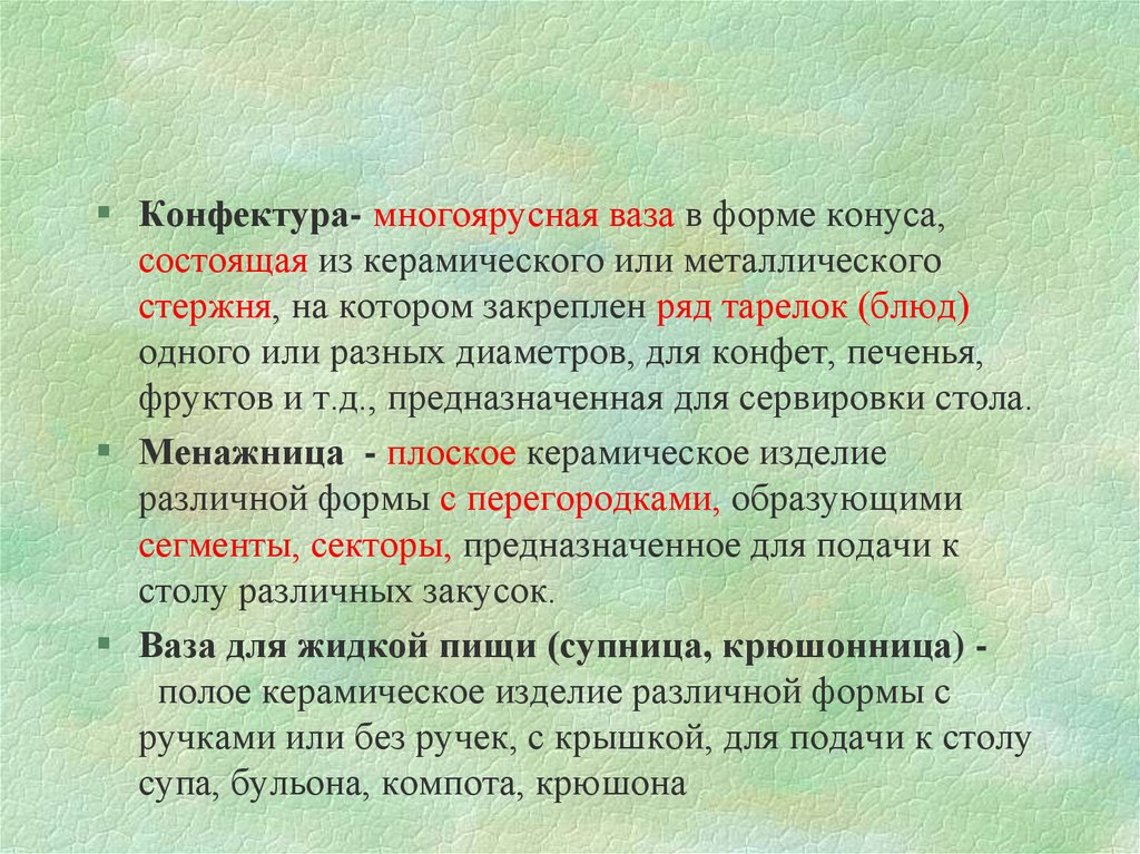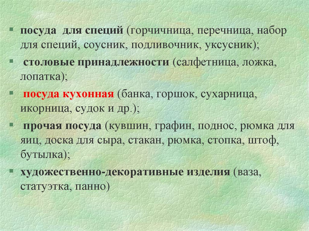 икорница, судок и др.);