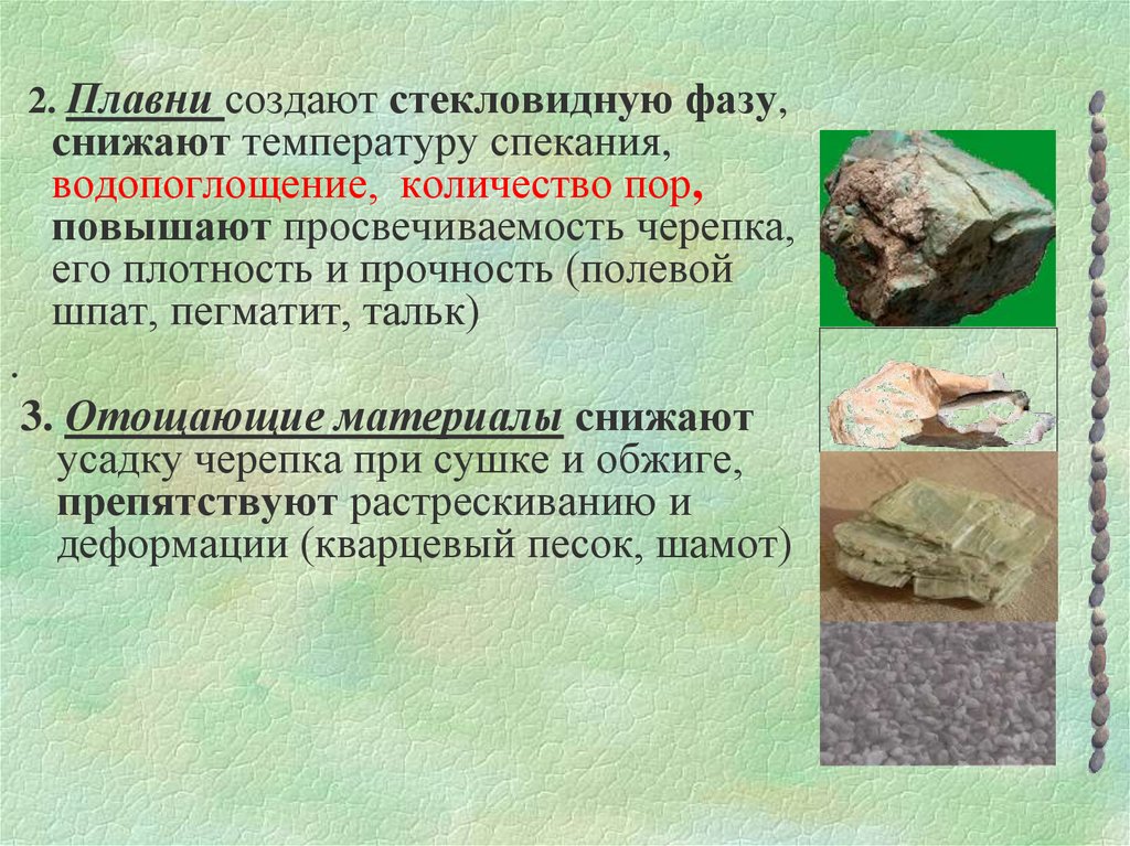2. Плавни создают стекловидную фазу,снижают температуру спекания,