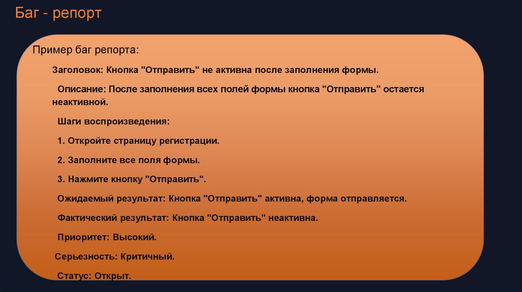Баг-репорты должны быть четкими и содержать всю необходимую