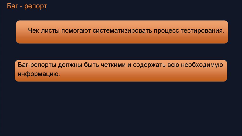 Баг - репортЧек-листы помогают систематизировать процесс тестирования.