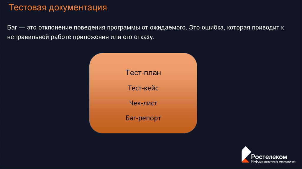 Тестовая документацияБаг — это отклонение поведения программы от ожидаемого. Это ошибка, которая приводит к
