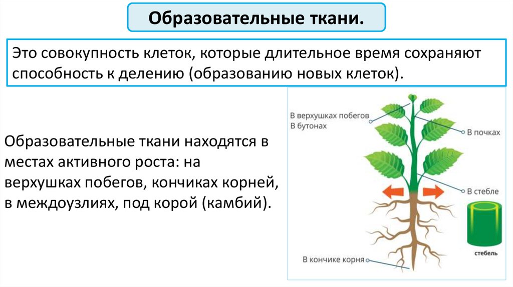 Образовательные ткани.Это совокупность клеток, которые длительное время сохраняют
