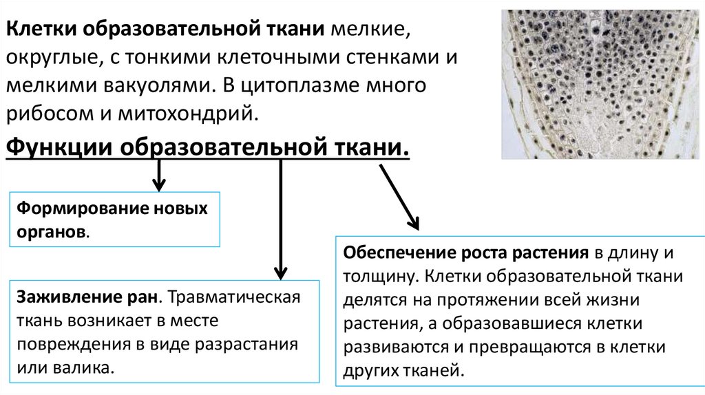 Клетки образовательной ткани мелкие,округлые, с тонкими клеточными стенками и