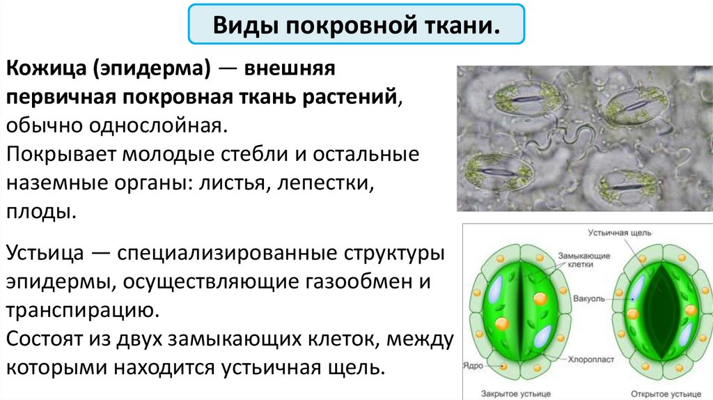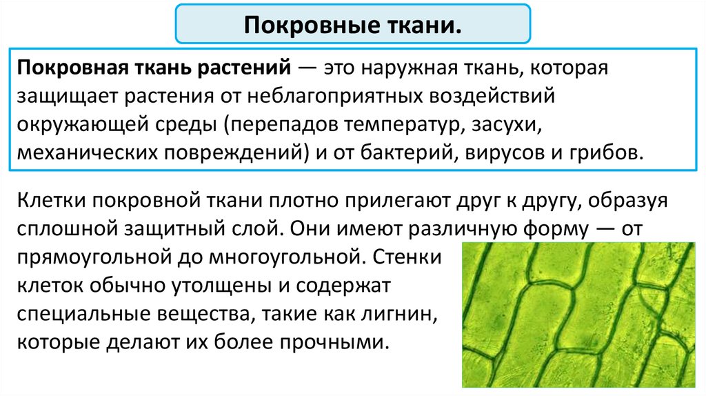 Покровные ткани.Покровная ткань растений — это наружная ткань, которая