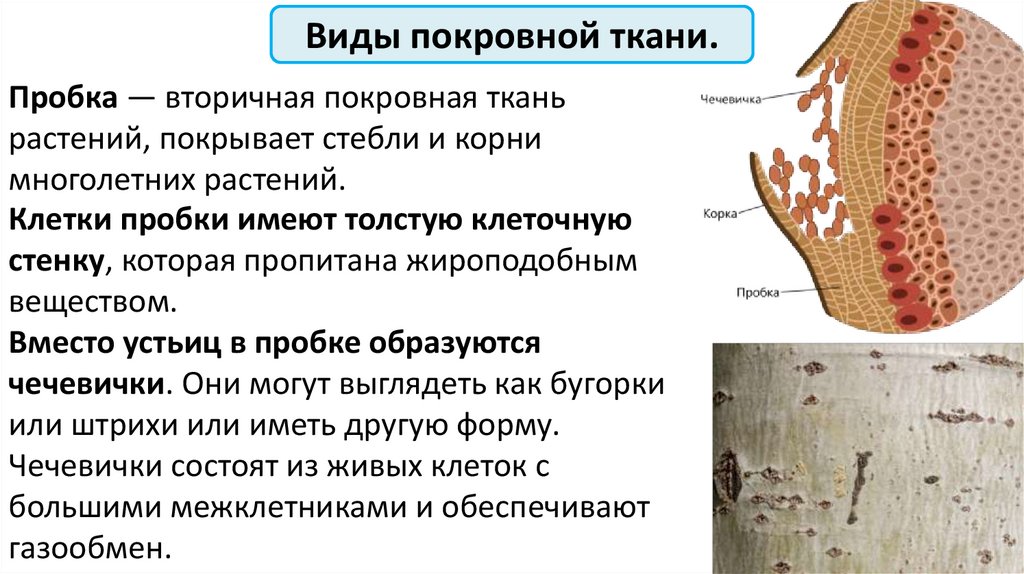Виды покровной ткани.Пробка — вторичная покровная ткань