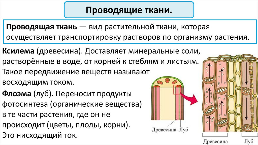 Проводящие ткани.Проводящая ткань — вид растительной ткани, которая