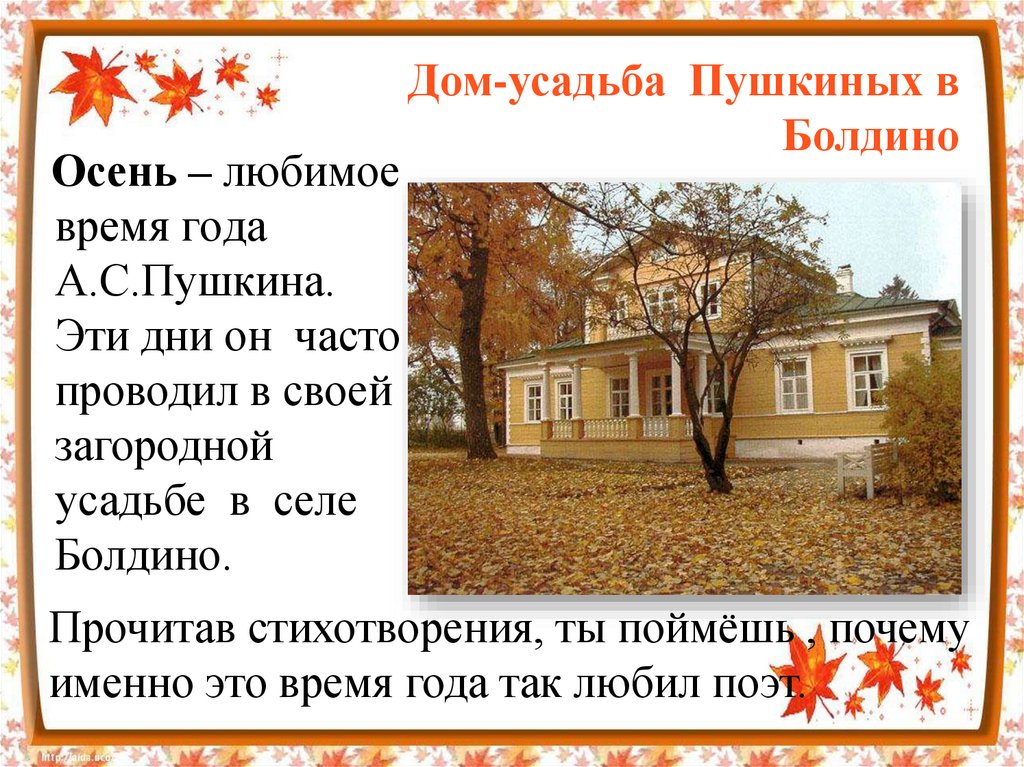 именно это время года так любил поэт.