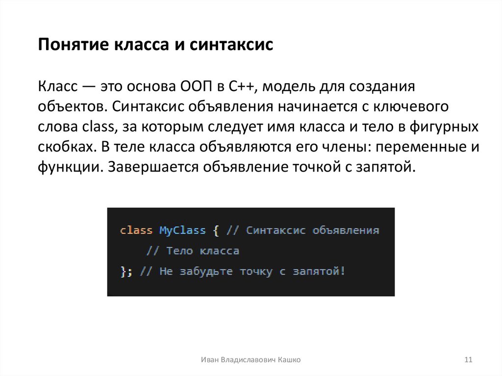 Понятие класса и синтаксисКласс — это основа ООП в C++, модель для создания