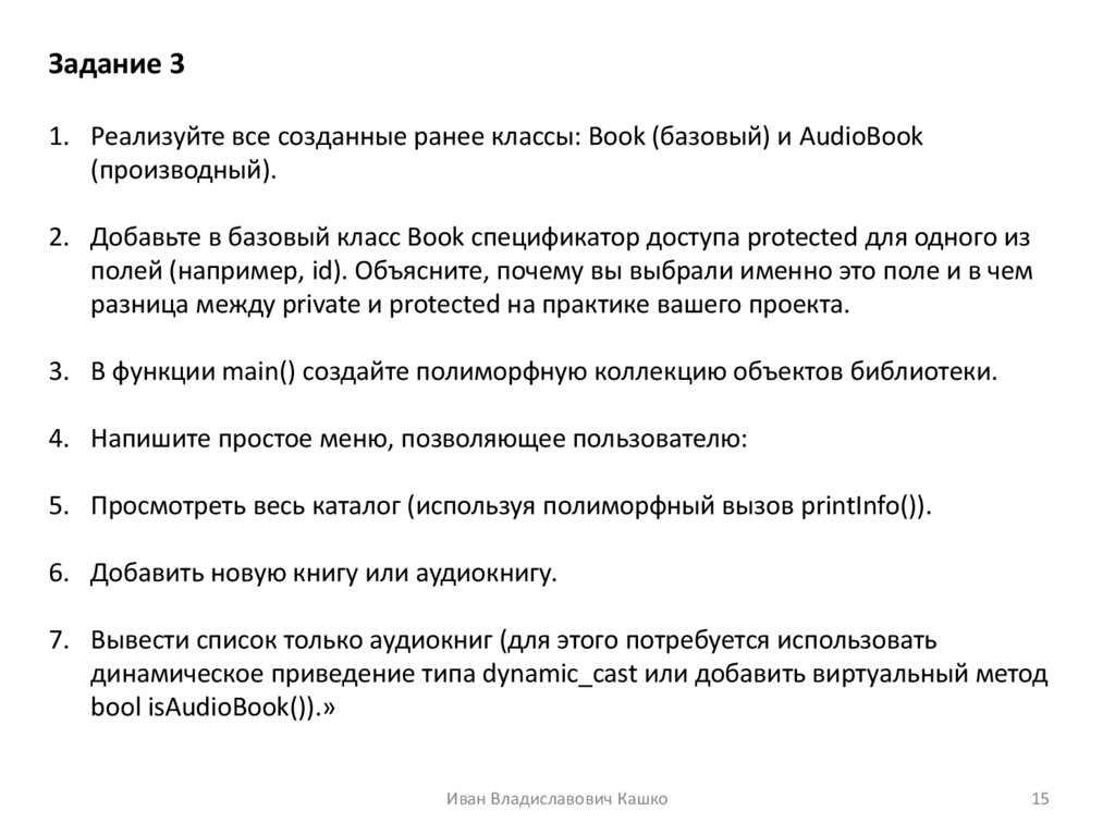 3. В функции main() создайте полиморфную коллекцию объектов библиотеки.