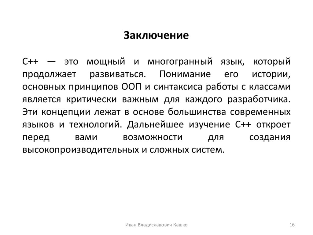 ЗаключениеC++ — это мощный и многогранный язык, который