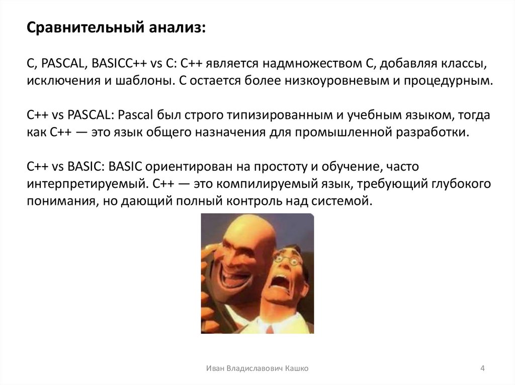 Сравнительный анализ:C, PASCAL, BASICC++ vs C: C++ является надмножеством C, добавляя классы,