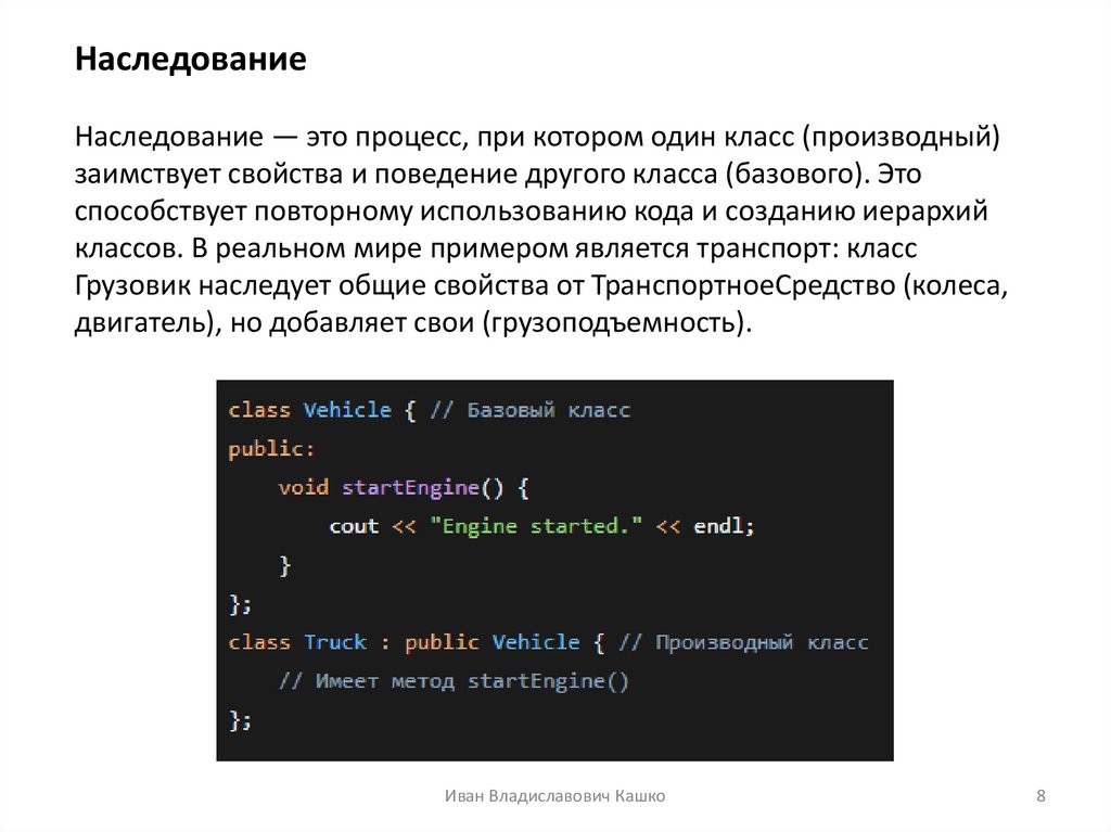 НаследованиеНаследование — это процесс, при котором один класс (производный)
