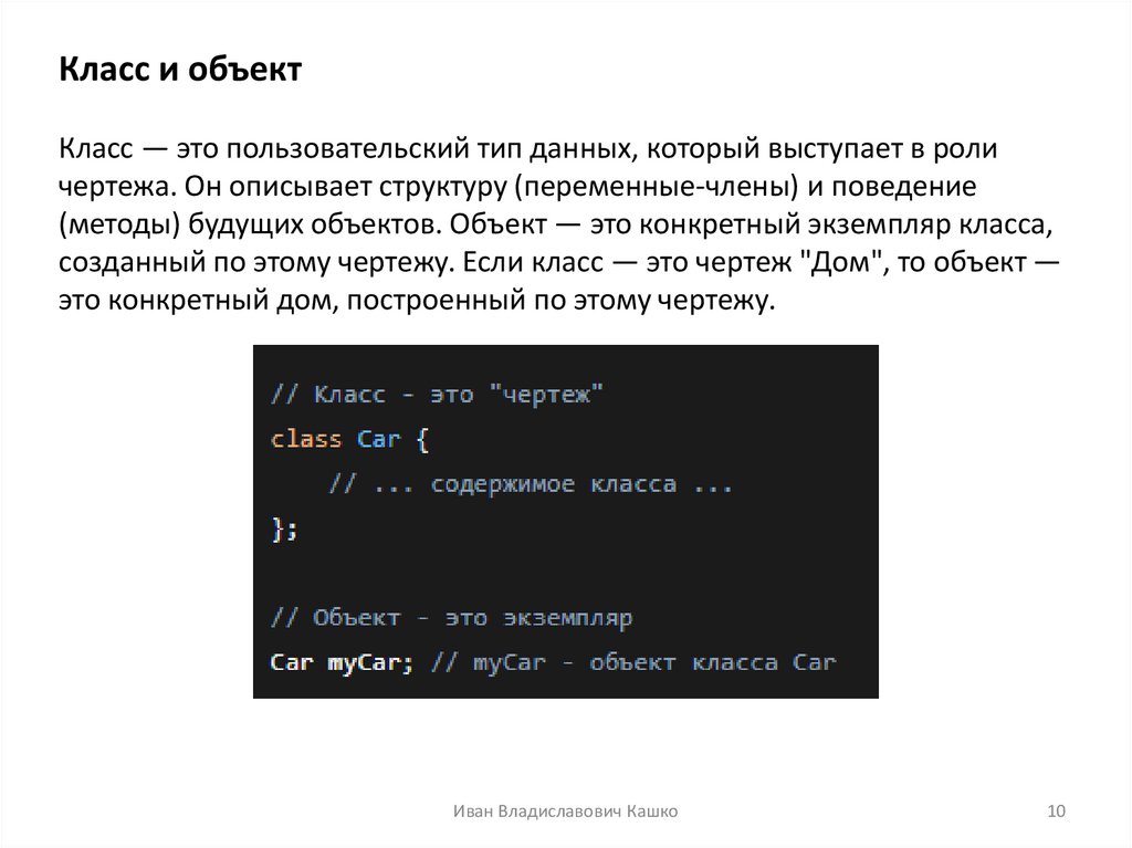 Класс и объектКласс — это пользовательский тип данных, который выступает в роли
