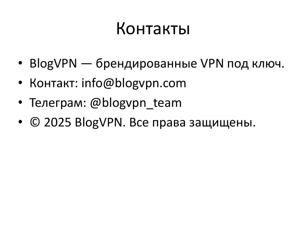 Контакты• BlogVPN — брендированные VPN под ключ.