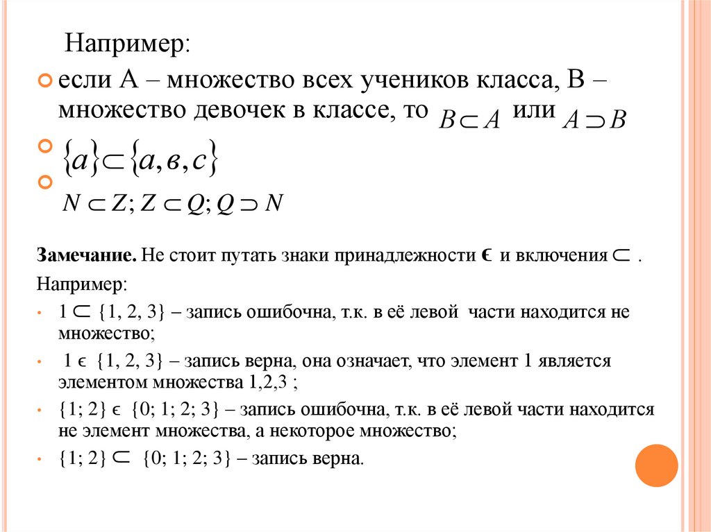 Замечание. Не стоит путать знаки принадлежности ϵ и включения .
