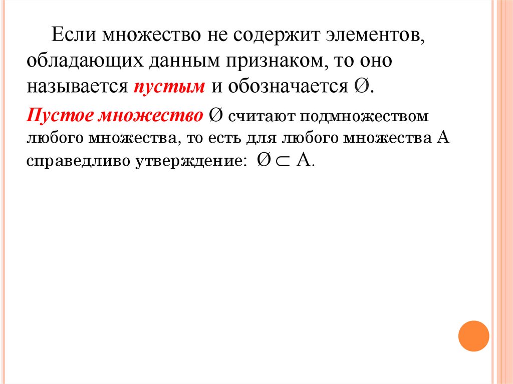 Если множество не содержит элементов,обладающих данным признаком, то оно