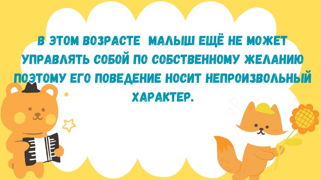 В этом возрасте малыш ещё не можетуправлять собой по собственному желанию