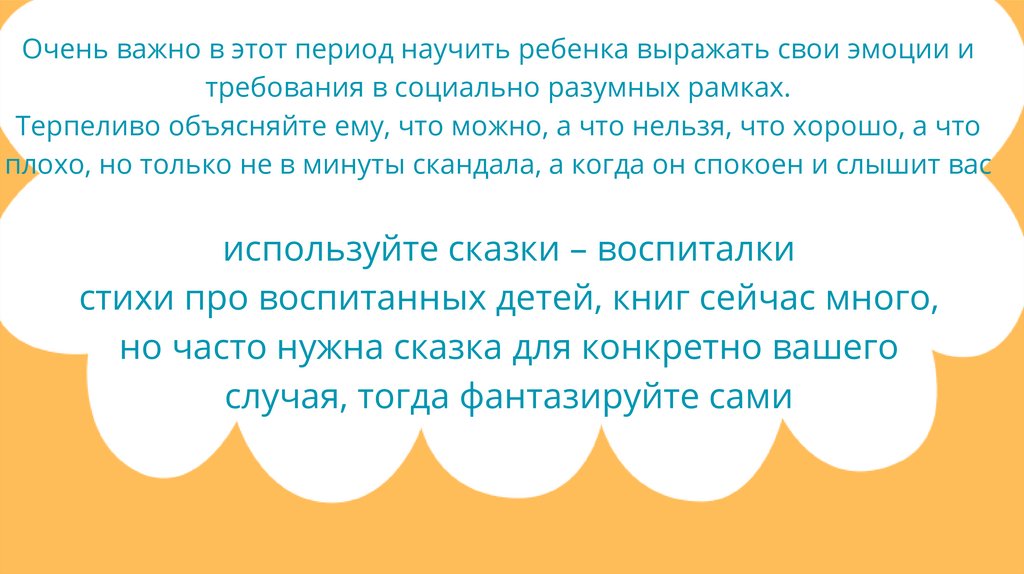 Очень важно в этот период научить ребенка выражать свои эмоции итребования в социально разумных рамках.