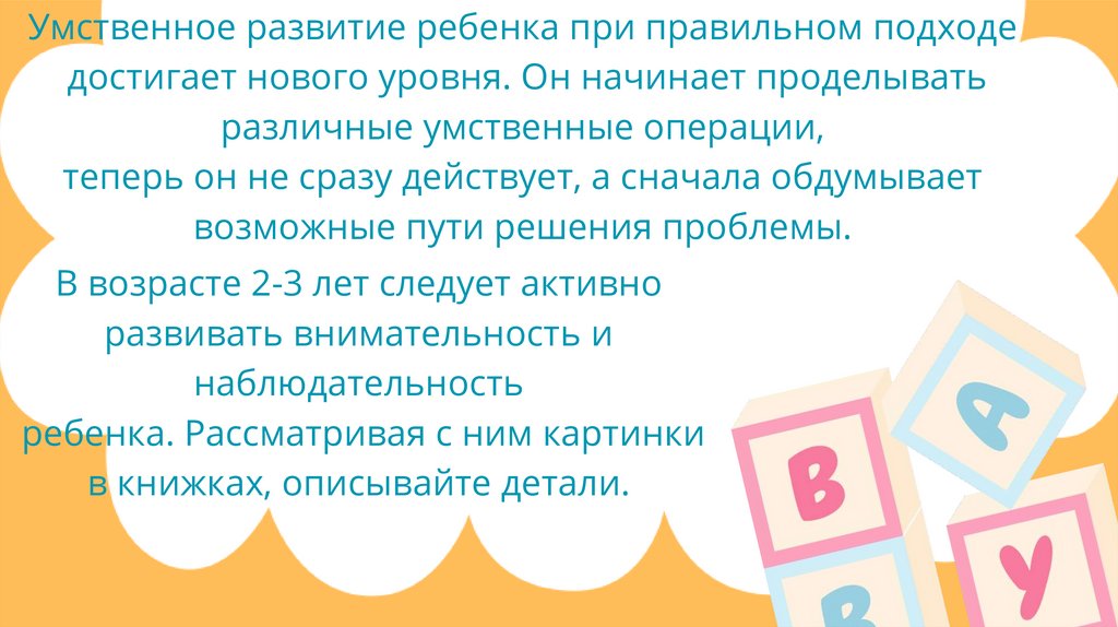 Умственное развитие ребенка при правильном подходедостигает нового уровня. Он начинает проделывать