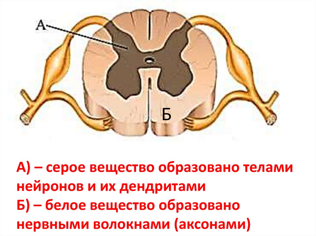 А) – серое вещество образовано телами